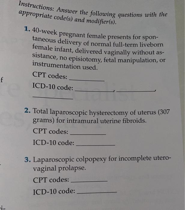 Solved Looking For Icd 10 Cm Or Cpt Codes For The Diagnosis Chegg Com
